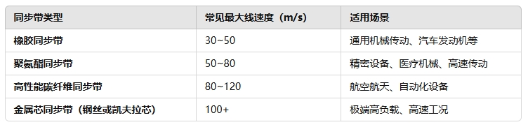 1.材料:聚氨酯同步帶通常比橡膠同步帶能承受更高的速度。